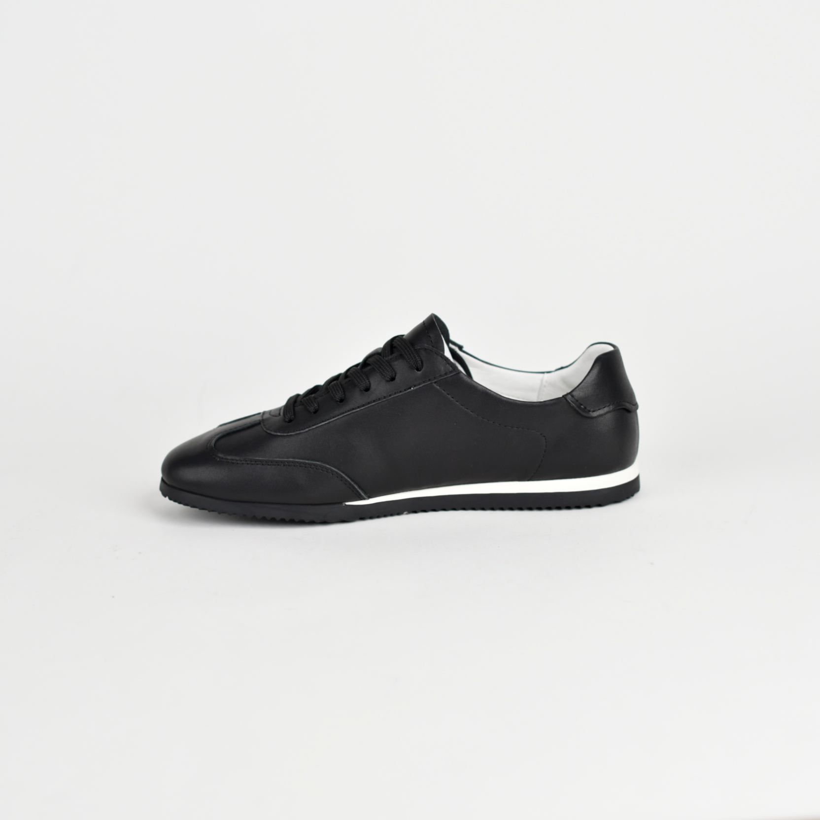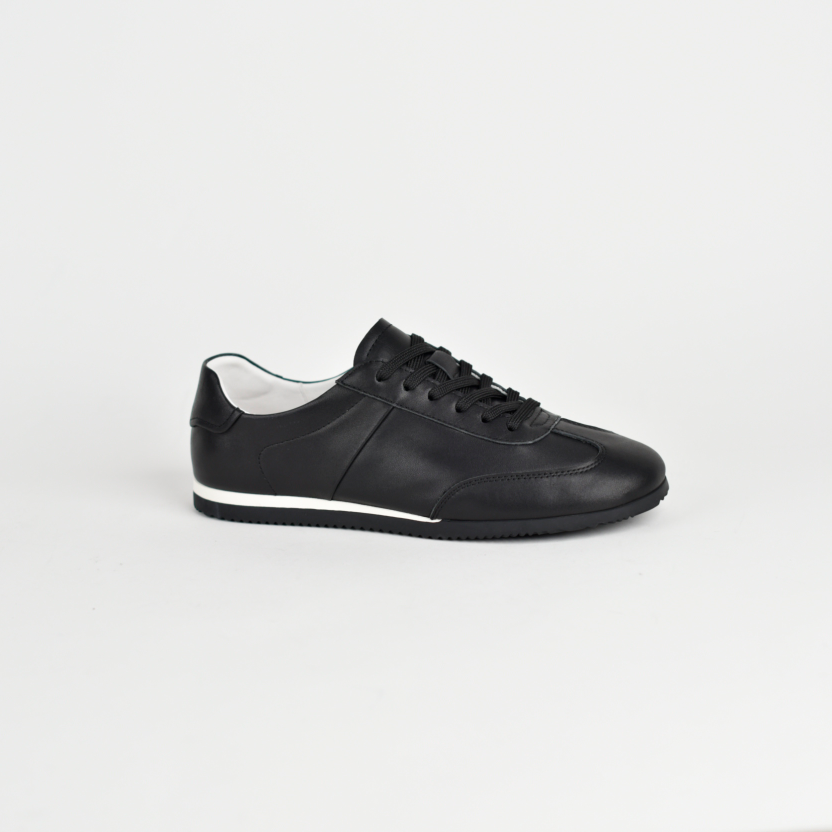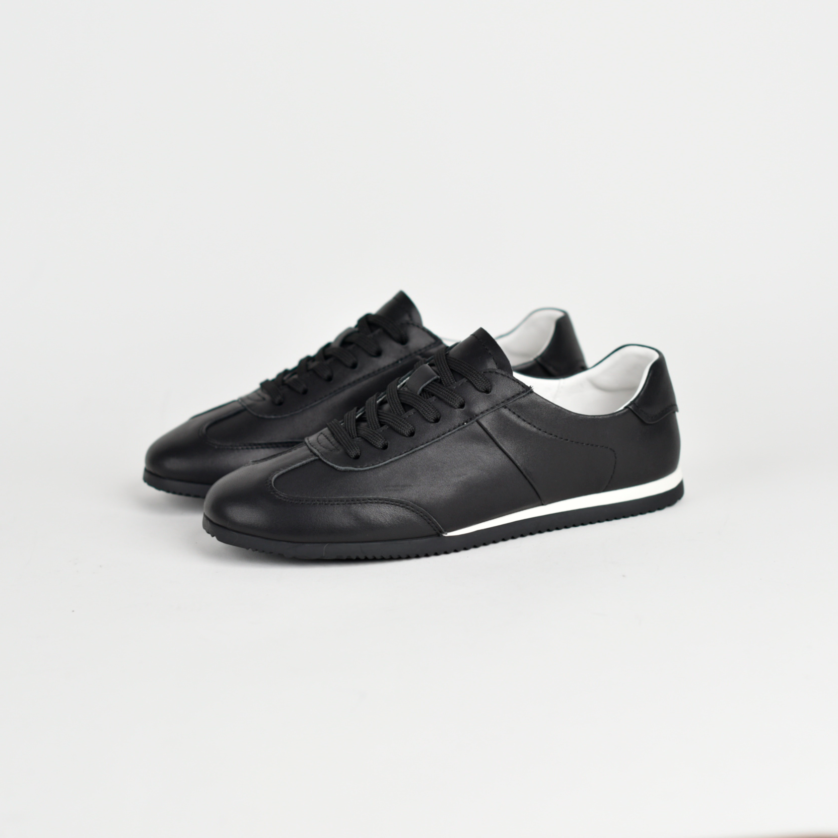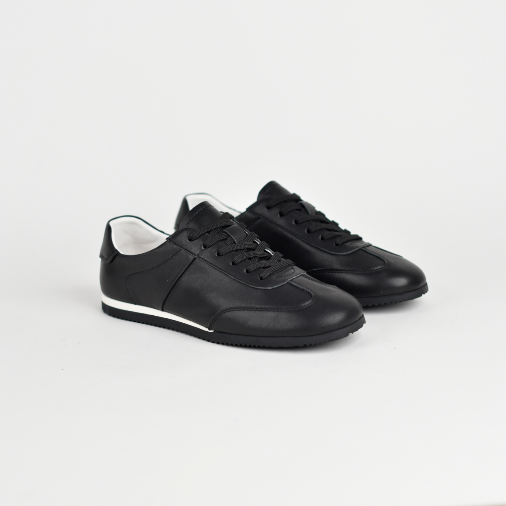 Këto janë një palë atlete elegante për përdorim të përditshëm, me dizajn minimalist dhe modern. Janë të punuara me material cilësor (dukshëm lëkurë ose imitacion lëkure), në ngjyre te zeze, që i bën të lehta për t’u kombinuar me veshje të ndryshme.